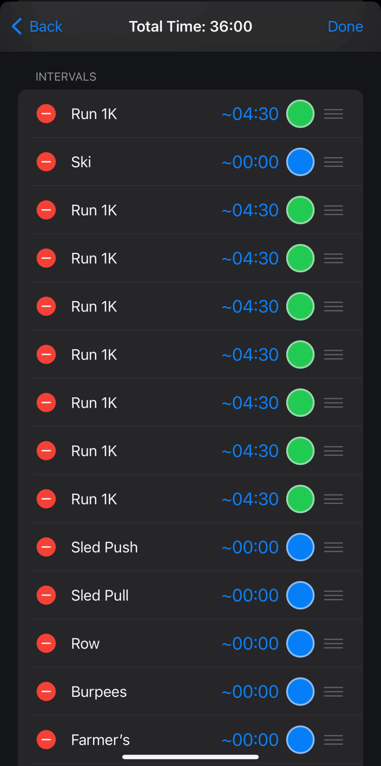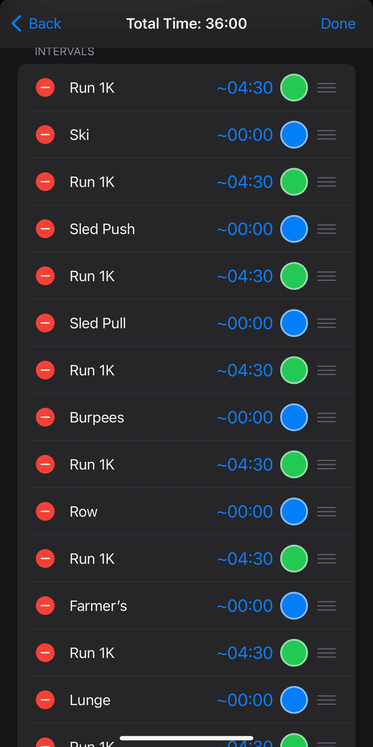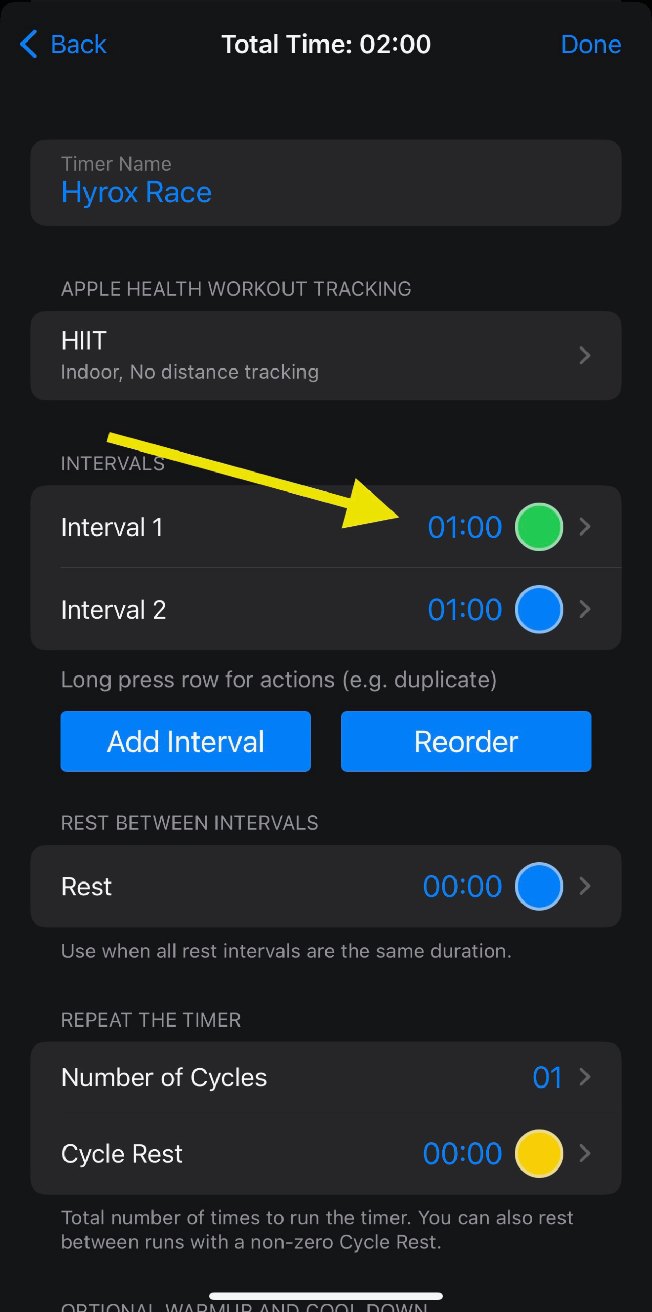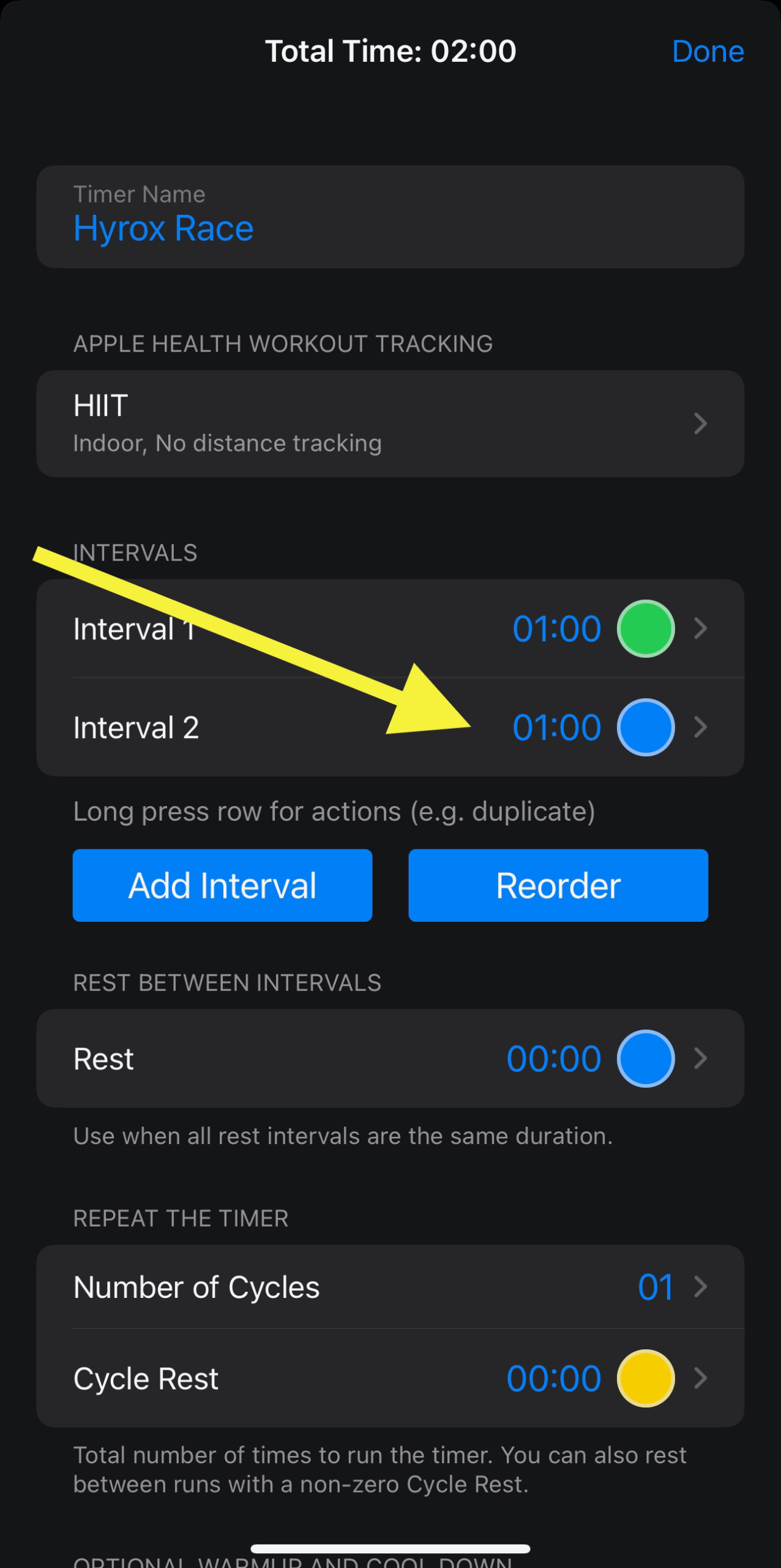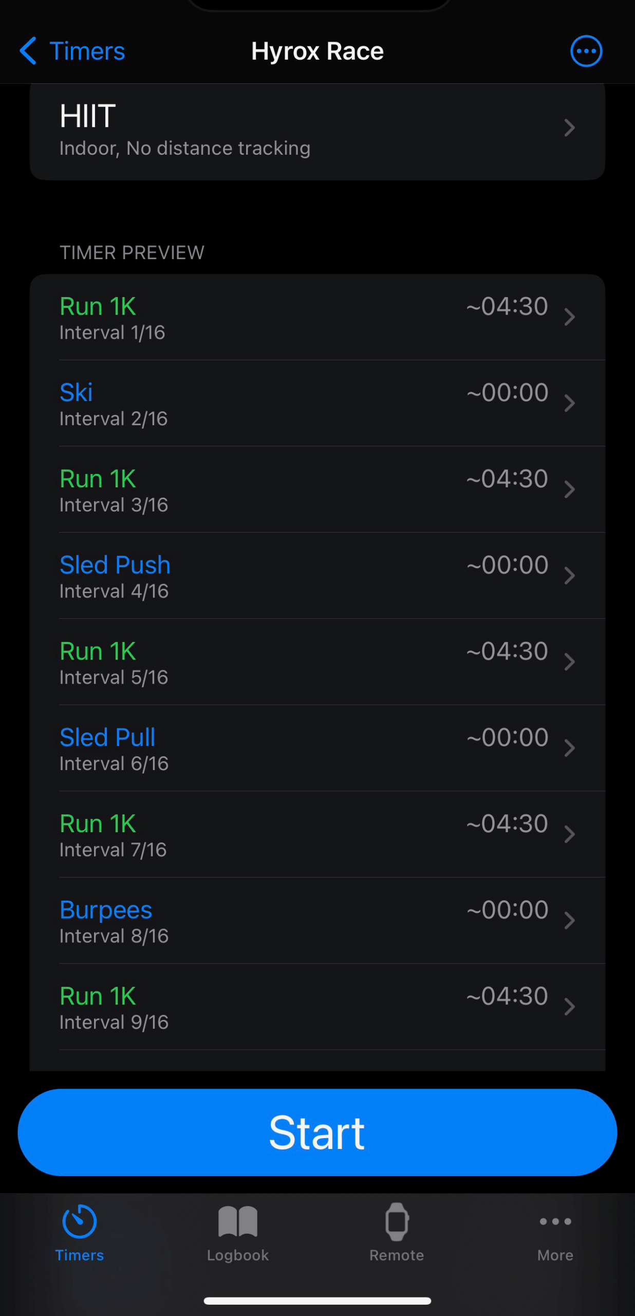 It is possible to set up your Apple Watch via the native APP for a Hyrox run, however, Luis’ recommendation is to download the Intervals PRO App.